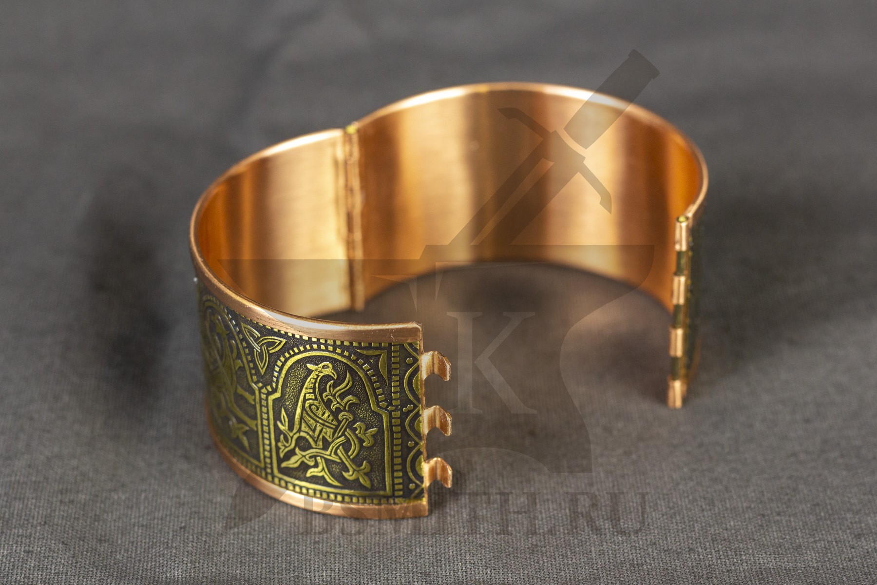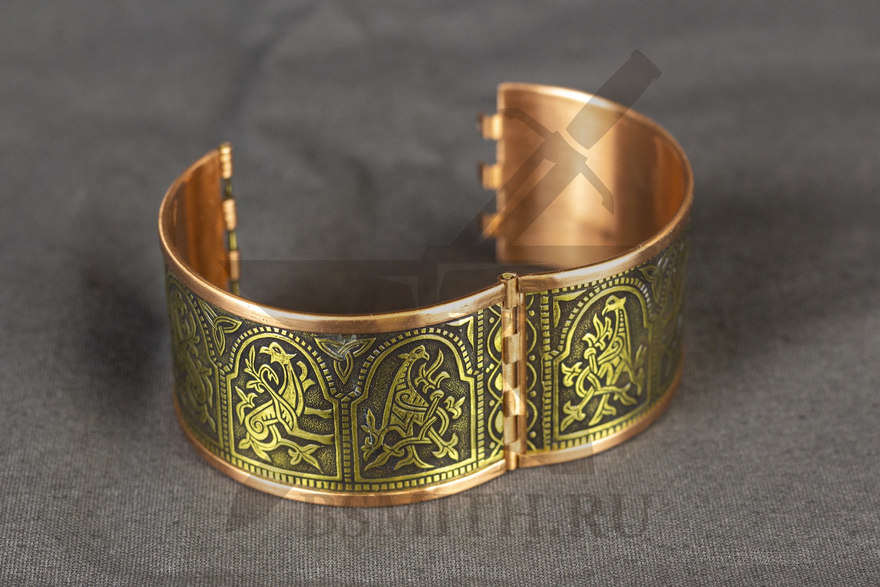 Орнамент браслеты выполнен на основе орнамента браслета из клада 1893 года, найденного в Киеве, на углу улиц Сретенская и Малая Владимирская.