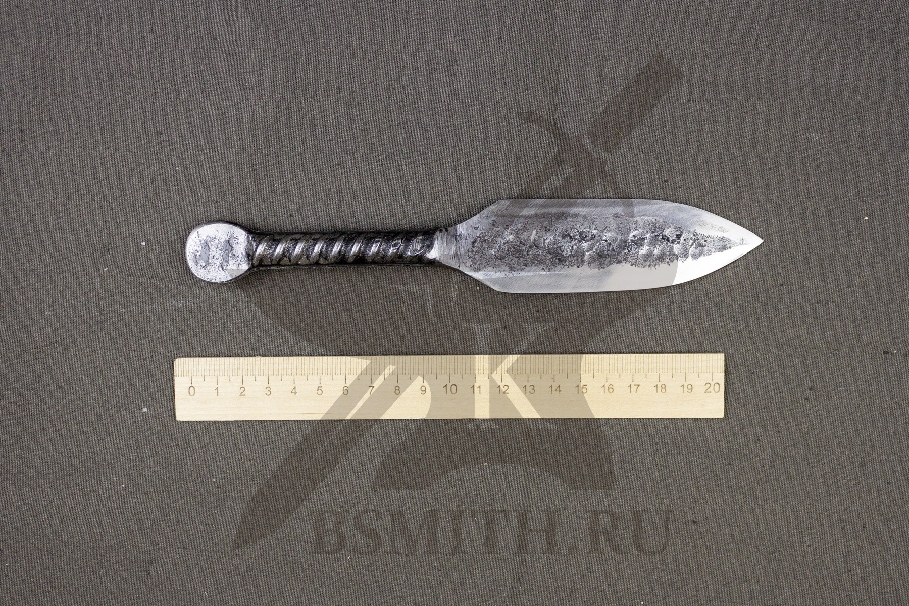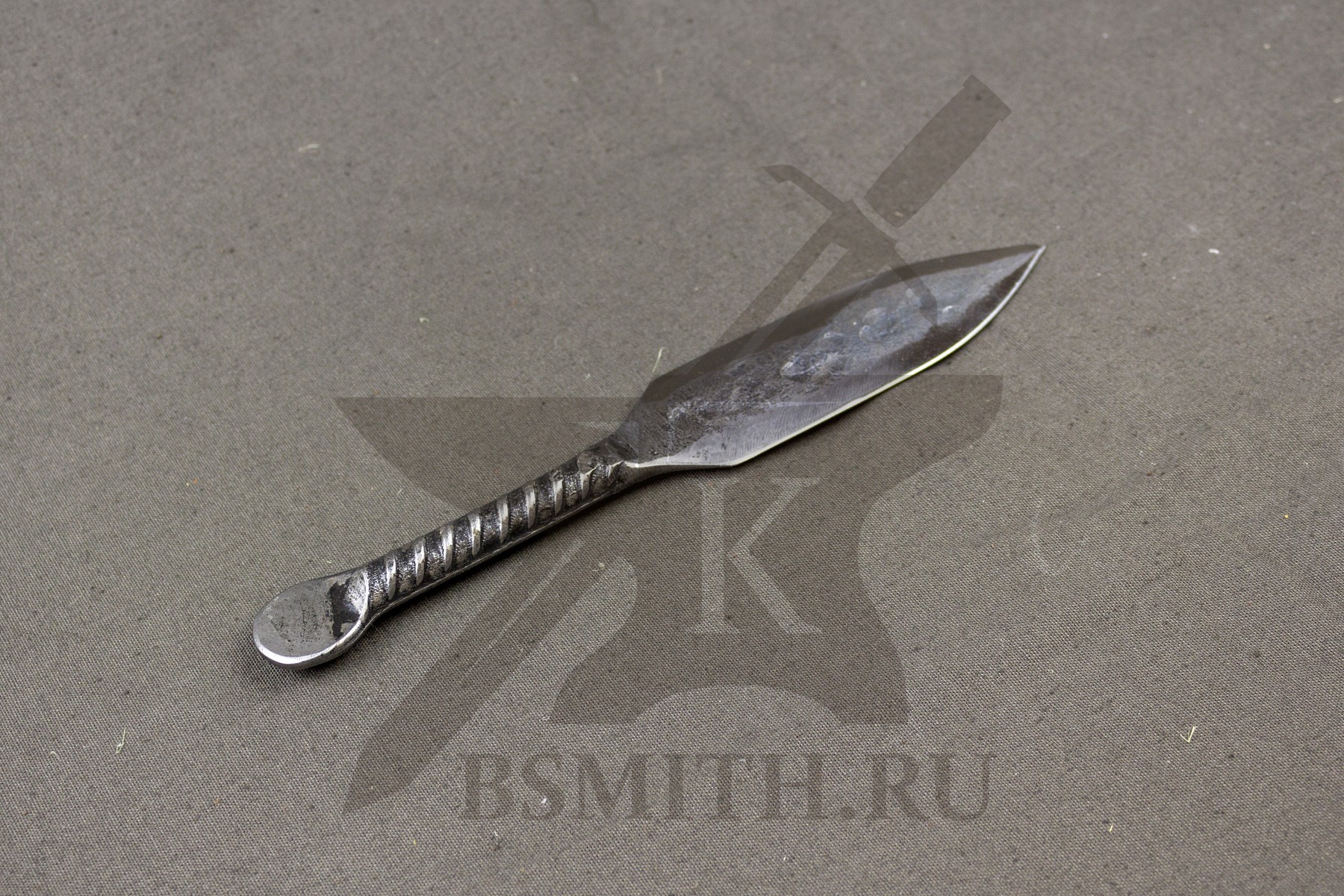 Простейший скелетный метательный нож, раскованный из одного прутка арматуры.